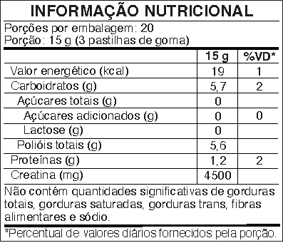 Catarinense Nutrição Creatina Gummies oferece uma forma inovadora e saborosa de suplementar creatina. Cada dose diária fornece 4,5 g de creatina monohidratada, auxiliando no aumento do desempenho físico durante exercícios repetidos de curta duração e alta intensidade.
