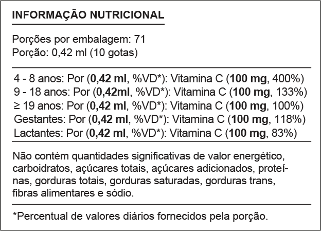 Recomenda-se o consumo de 10 gotas ao dia para crianças a partir de 4 anos, adolescentes, adultos, gestantes e lactantes.
